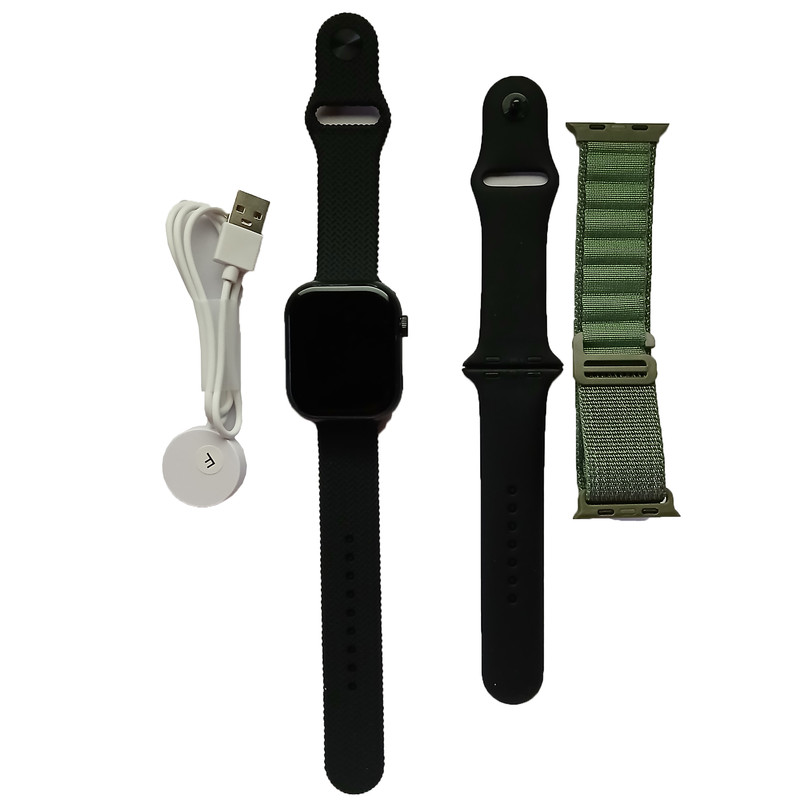 این ساعت به همراه 3 بند که دوتای آن سیلیکونی و یکی از آنها برزنتی است ارائه شده و همچنین دارای شارژر مغناطیسی(بدون سیم) است.