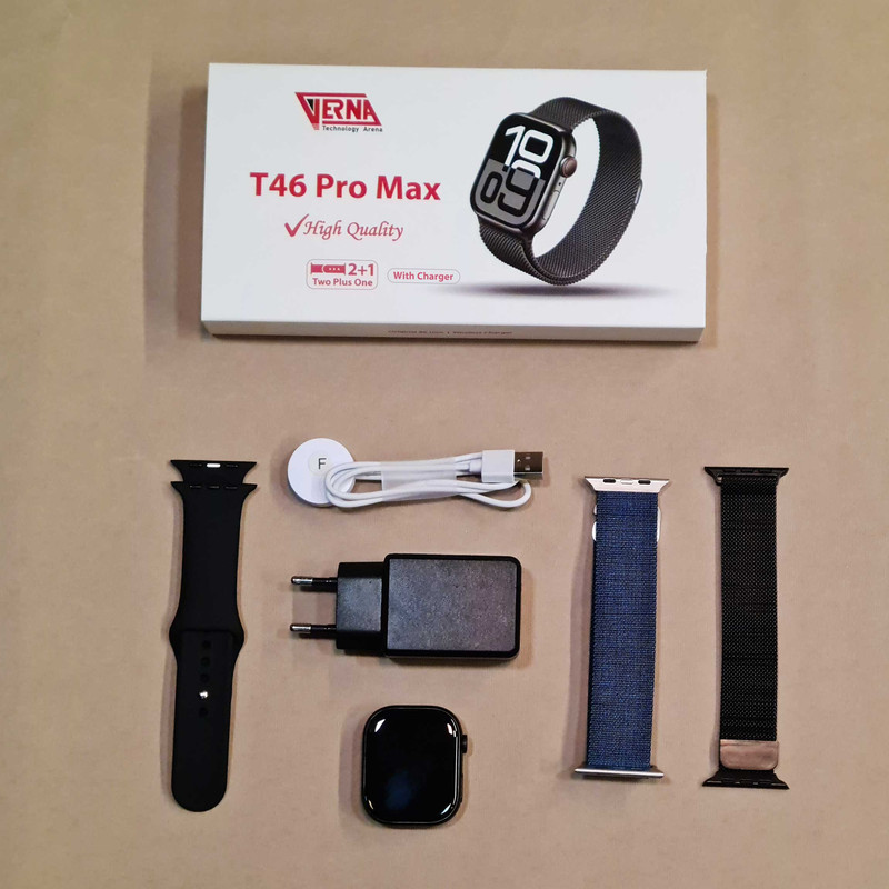 ساعت هوشمند 46 میلی متری ورنا مدل T46 Pro max با بند فلزی به همراه 2 بند اضافه و شارژر