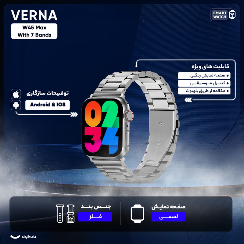 ساعت هوشمند ورنا مدل W45 Max With 7 Bands مناسب برای ورزش مجهز به گام شمار