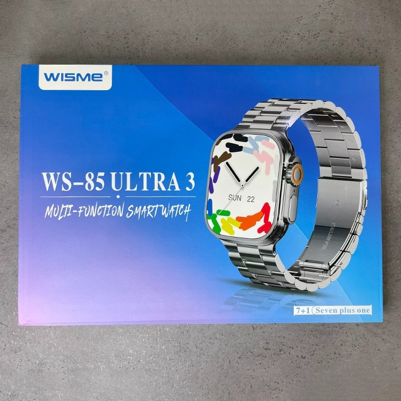 ساعت هوشمند Wisme مدل WS-85 Ultra3 با بدنه فلزی و سایز قاب ۴۹ میلیمتر، دارای صفحهنمایش لمسی رنگی ~۲.۰ اینچ مستطیلی، مقاومت در برابر پاشش آب با استاندارد IP65، مجهز به ۷ بند سیلیکونی و فلزی قابل تعویض، قابلیت مکالمه بلوتوثی با میکروفون و اسپیکر، اتصال از طریق بلوتوث 5.0 و 3.0 سازگار با اندروید و iOS، پشتیبانی کامل از زبان فارسی در منو و اعلانها، دارای سنسورهای سلامتی شامل ضربان قلب، فشار خون، اکسیژن خون، نوار قلب (ECG) و پایش خواب، امکاناتی نظیر کنترل موسیقی و دوربین، دستیار صوتی، Dynamic Island، ماشینحساب و واچفیسهای متنوع، باتری ۳۲۰ میلیآمپر با شارژ وایرلس و شارژدهی تا ۱۵ روز، به همراه ۷ بند و شارژر وایرلسی ارائه میشود.