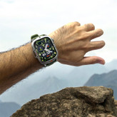 توضیحات رنگ بند و بدنه : رنگ مشکی: ساعت مشکی+ بند مشکی سیلیکونی. رنگ سبز: ساعت تیتانیوم و بند سبز زیتونی سیلیکونی