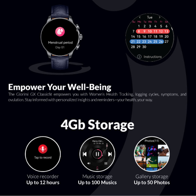 ساعت هوشمند 47 میلی متری گلوریمی مدل GX CLASSICFIT (LIMITED EDITION) بند چرمی