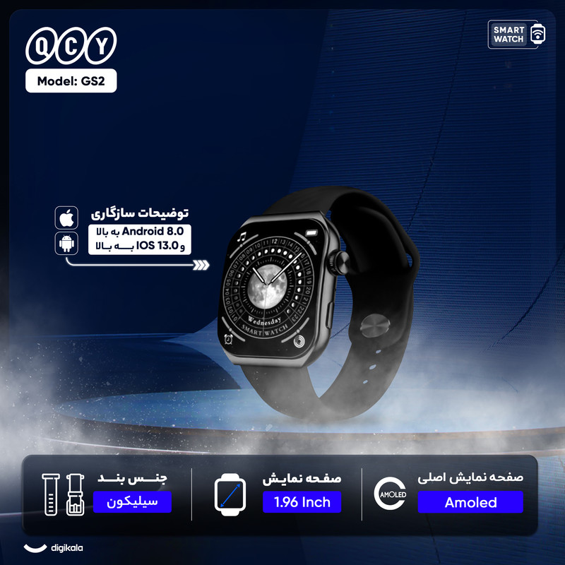 ساعت هوشمند کیو سی وای مدل GS2 با طراحی مستطیلشکل و امکانات پیشرفته، گزینهای ایدهآل برای کاربران روزمره و ورزشکاران است. بدنه این ساعت از جنس آلیاژ روی ساخته شده و بند سیلیکونی سبک آن، ترکیبی از دوام و راحتی را ارائه میدهد. بهصورت کلی طراحی این ساعت به نحوی است که با هر استایلی هماهنگ میشود.