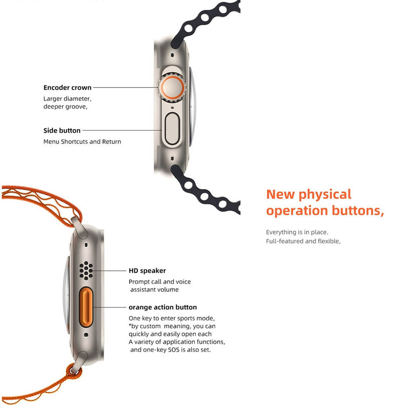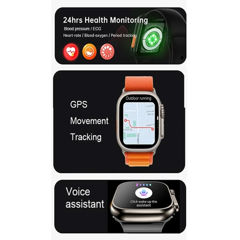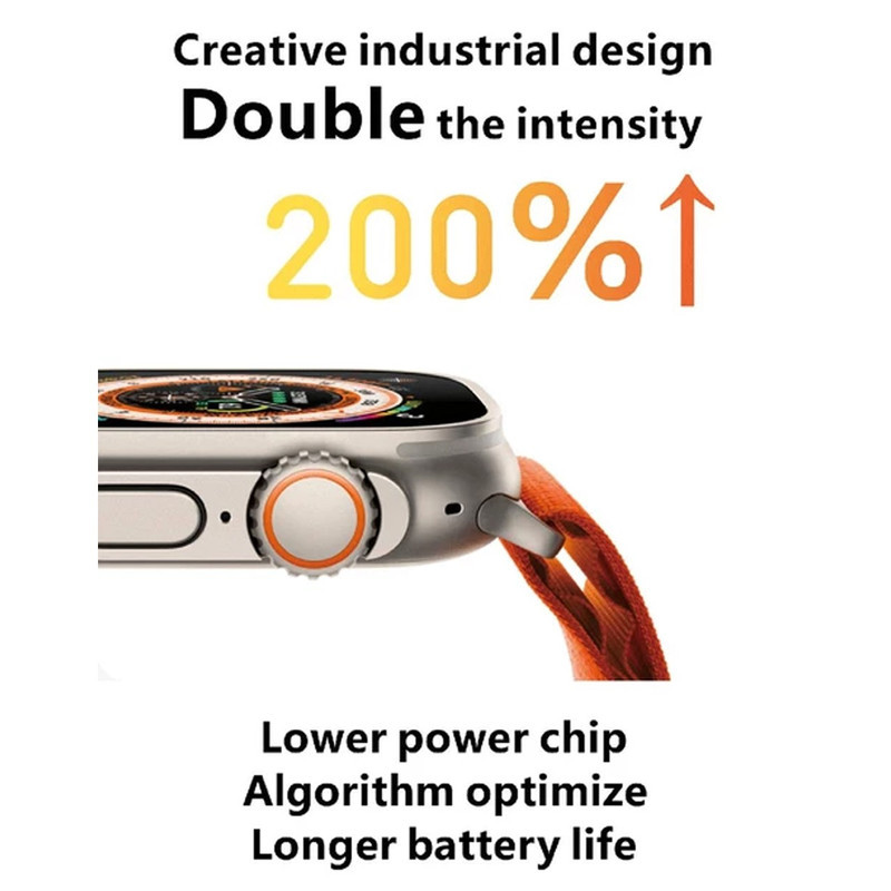 این ساعت هوشمند مشابه اپل واچ 8 اولترا که با نام تجاری Watch 8 ultra 2023 معرفی شده است. این گجت هوشمند از جدیدترین ویژگی ها و تکنولوژی های موجود استفاده کرده است. این ساعت هوشمند با سایز 49 میلی متری دارای قابلیت هایی از جمله: