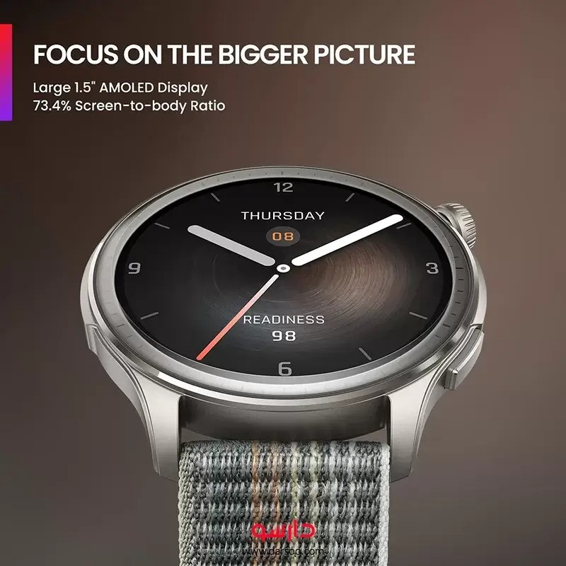 نمایشگر ساعت از نوع آمولد و 1.5 اینچی ست که با رزولوشن 480 در 480 پیکسل در هر اینچ 323 پیکسل جای میدهد و با روشنایی خیره کنندهی 1500 نیتی، خیالتان را از بابت وضوح نمایشگر در زیر نور مستقیم خورشید راحت میکند. ساعت هوشمند Amazfit Balance با بلوتوث نسخه 5.3 به گوشی هوشمند شما متصل میشود و با میکروفون و اسپیکر داخلی پاسخ به تماسهای دریافتی را امکانپذیر میکند.