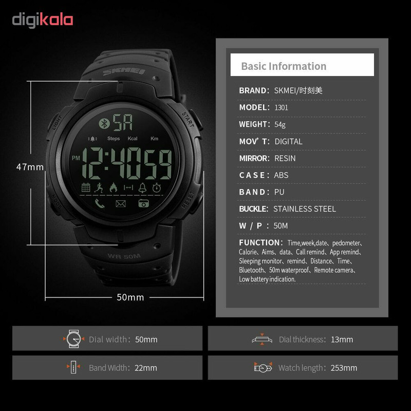 ساعت هوشمند مدل «1301» پساز اتصال از طریق بلوتوث به سیستمعامل Android 4.3 به بالا و ios 7 به بالا شروع به رصد کردن فعالیتهای شما در طول شبانهروز میکند. بهدلیل ضدآب بودن تا عمق 50 متر،این ساعت هوشمند گزینهای مناسب برای ورزشهای آبی است و دارای باتری داخلی است که تا مدتها نیازی به تعویض ندارد و بهدلیل طراحی ورزشی دارای نور پسضمینه است که با فشردن دکمهای که در کنار ساعت تعبیه شده فعال میشود. پساز ست شدن گوشی با ساعت، میزان کالری مصرفی بهصورت دورهای و روزانه و لحظه به لحظه از طریق برنامه نصب شده قابل مشاهده است. اعلان شبکههای اجتماعی و تماس ورودی از دیگر قابلیتهای این ساعت است.