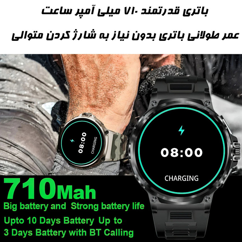 قابلیتهای ساعت هوشمند : صفحه نمایش رنگی , صفحه نمایش لمسی , کنترل موسیقی (Music Player) , کنترل سطح اکسیژن خون , قابلیت مکالمه از طریق بلوتوث