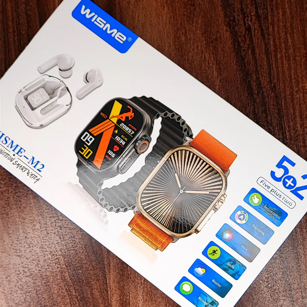 ساعت هوشمند WISME-M2 اولین ساعت با هفت بندجذاب وقاب ژله ای و شارژروایرلس ، اتصال به تمامی گوشی ها سایز 45 میلی متر اگر به دنبال یک ساعت هوشمند مقرون به صرفه هستید که از قابلیت مکالمه تلفنی برخوردار باشد،دارای بند سیلیکونی مجهز به حسگرهای ضربان قلب ، کالری سنج ، اندازه گیری اکسیژن خون ، گام شمار ، تایمر ، آلارم ، اندازه گیری فشار خون ، کنترل موسیقی ،و، … قابلیت مکالمه و قابلیت های فراوانی نظیر فارسی سازی منو و خواندن پیام های فارسی را دارد که برای کاربران ایرانی اهمیت ویژه دارد.، پخش موسیقی و مکالمه ،کنترل شاتر دوربین، فشار خون، اکسیژن خون، ضربان قلب،، قدم شمار، ، و فقط برخی از امکانات این ساعت است. این ساعت علاوه بر اینکه میتواند تمامی نیاز شما را از یک ساعت هوشمند برطرف کند دارای کیفیت بالایی است و قیمت آن نسبت به ساعت های هم رده خود مناسب تر است.