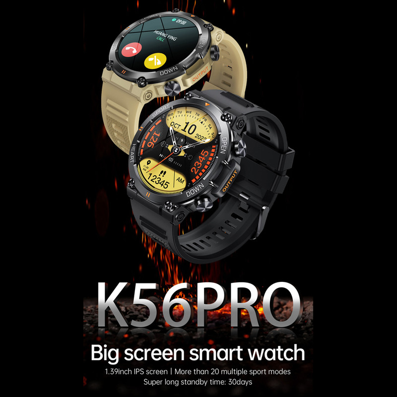 ساعت هوشمند مدل K56 Pro دارای قابلیت های شمارنده ضربان قلب، کنترل سطح اکسیژن خون، کنترل فشار خون، کنترل موسیقی، گام شمار، بند سیلیکونی
