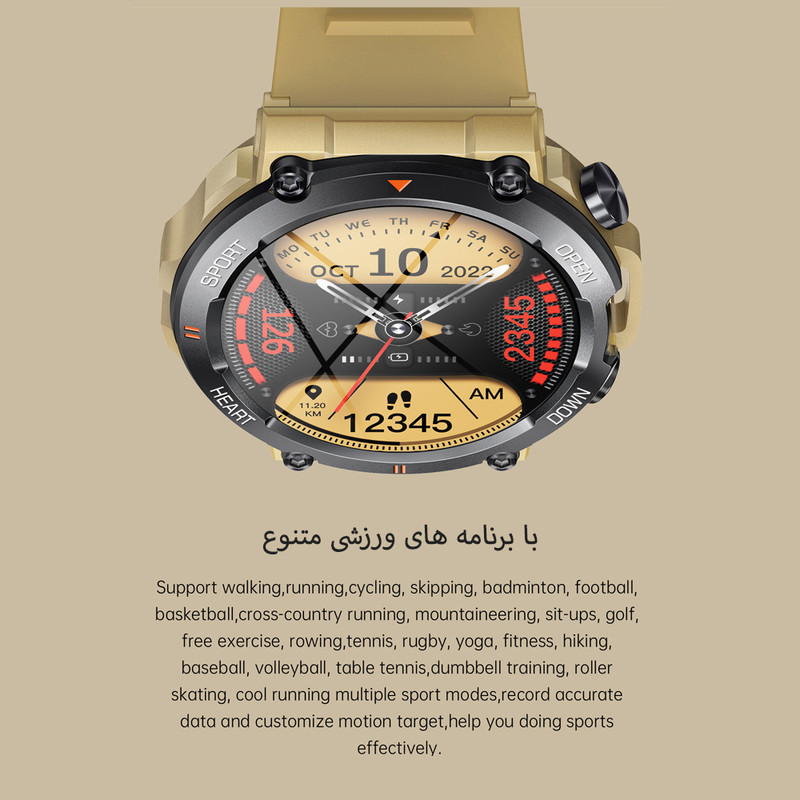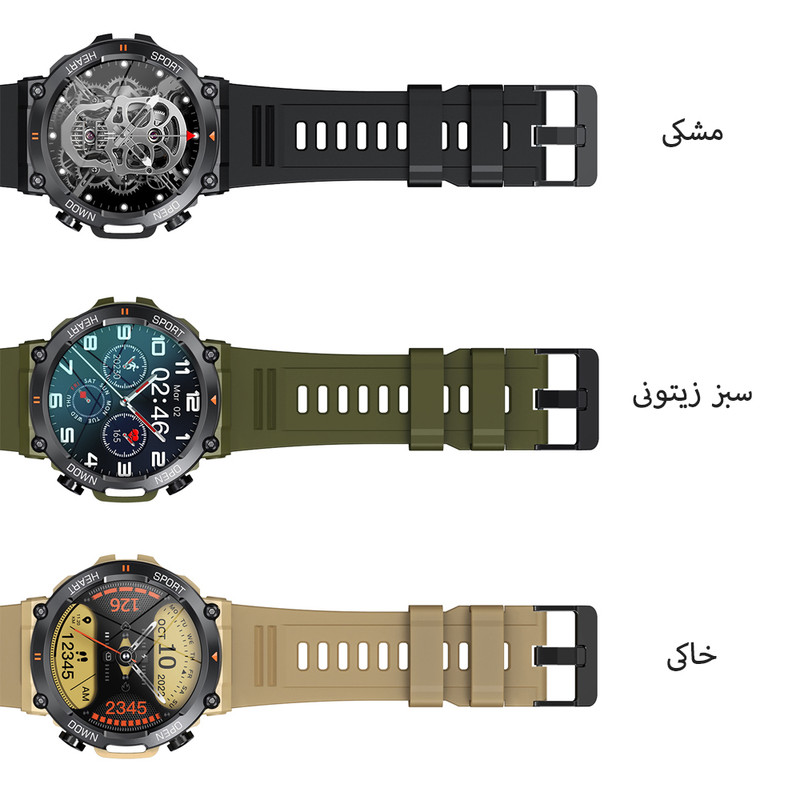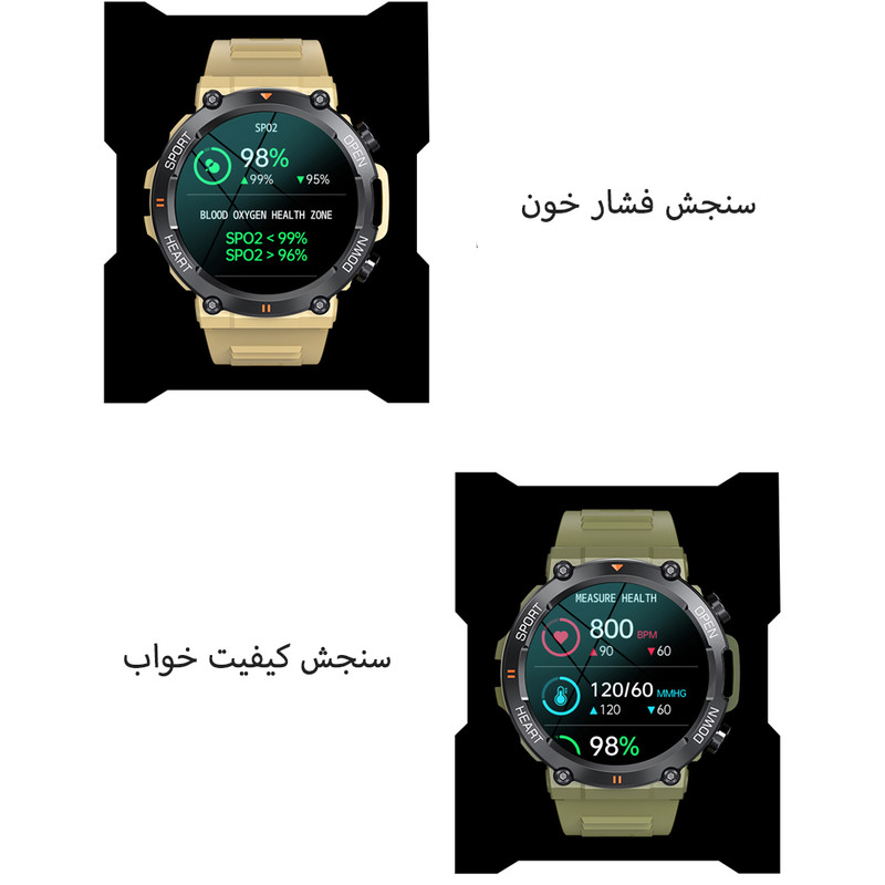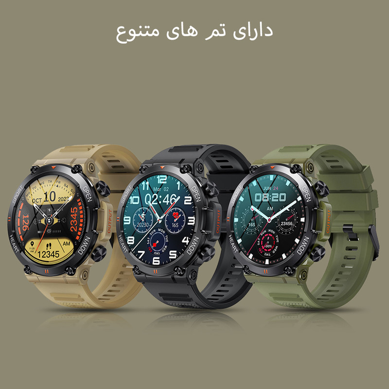 صفحه نمایش رنگی , صفحه نمایش لمسی , کنترل موسیقی (Music Player) , کنترل سطح اکسیژن خون , قابلیت مکالمه از طریق بلوتوث , قابلیت تغییر طرح ساعت یا تم