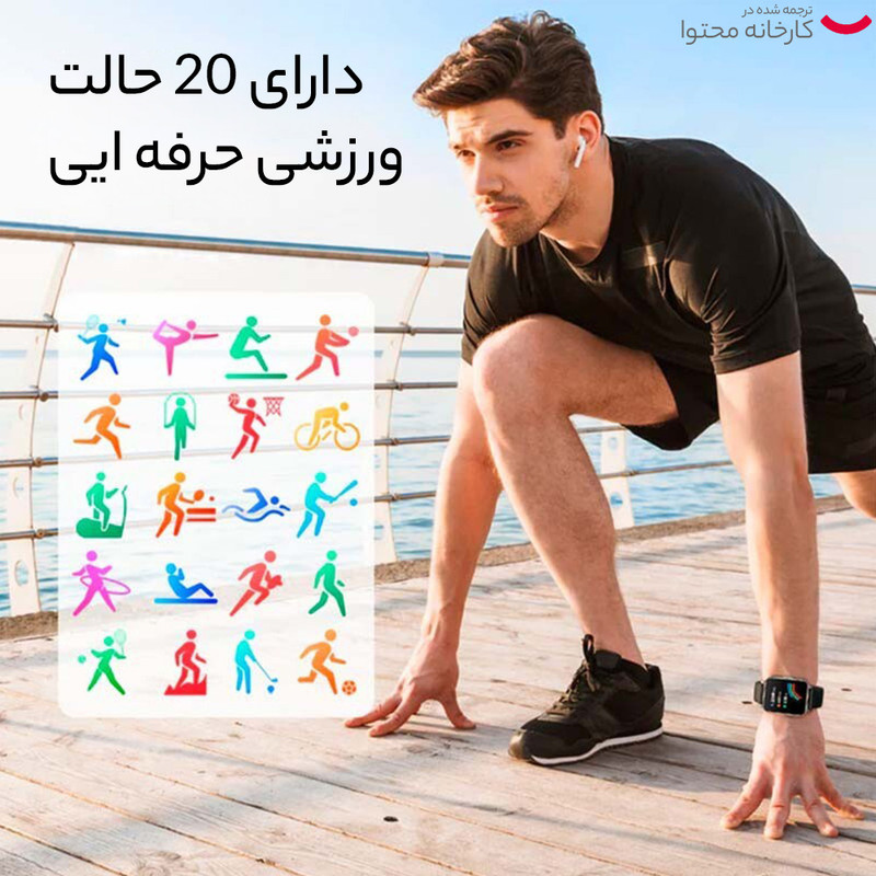 قابلیتهای ساعت هوشمند : صفحه نمایش رنگی , صفحه نمایش لمسی , کنترل موسیقی (Music Player) , کنترل سطح اکسیژن خون