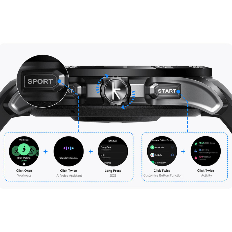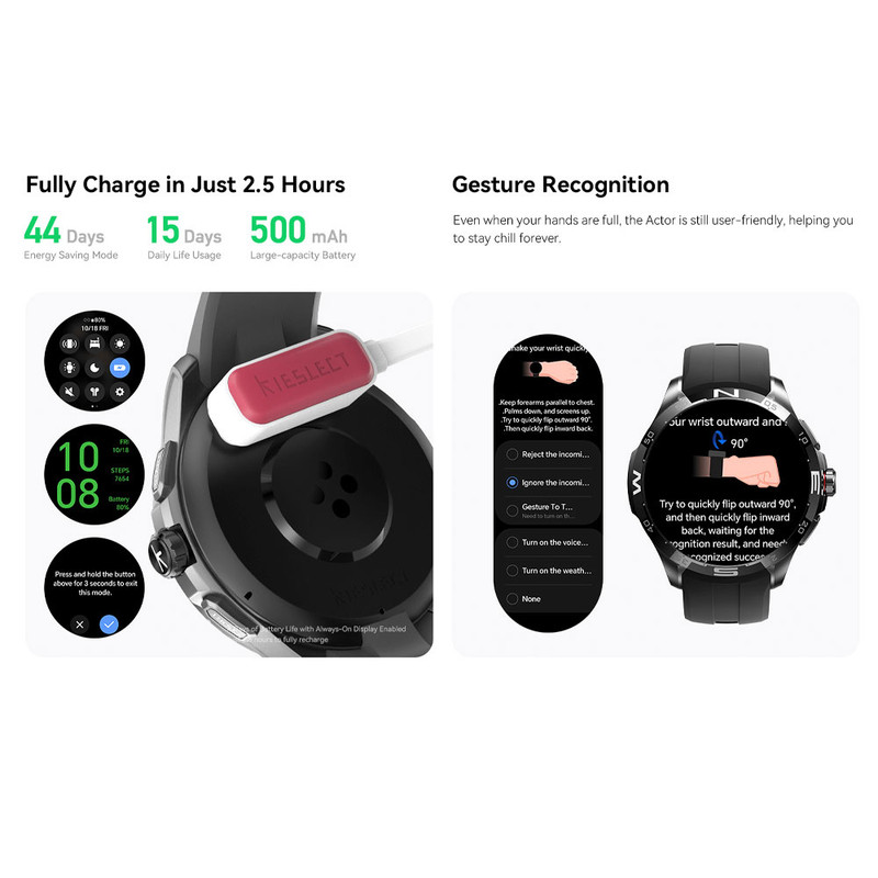 ساعت هوشمند کیسلکت مدل Actor دارای قابلیت های صفحه نمایش لمسی، صفحه نمایش رنگی، کنترل سطح اکسیژن خون بند سیلیکون
