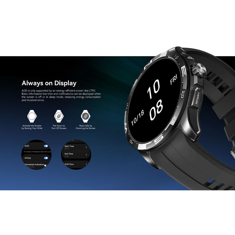 پشتیبانی از حالت صفحه همیشه روشن (Always On Display) / شارژدهی باتری در استفاده روزمره تا 15 روز / شارژدهی باتری در حالت ذخیره نیرو تا 44 روز / پشتیبانی از 150 حالت ورزشی / پشتیبانی از 26 زبان