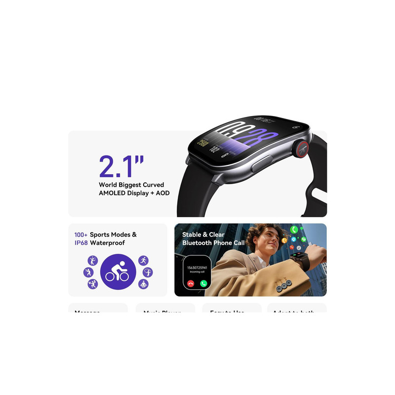 دارای گواهی IP68 (مقاوم دربرابر نفوذ آب) / مجهز به میکروفون و بلندگو / شارژدهی باتری در استفاده روزمره تا 15 روز