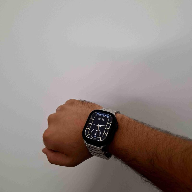 ساعت هوشمند مدل ویزمی ultra2، سایز۴۸، شمارنده ضربان قلب، گام شمار، قابلیت مکالمه مستقیم، پشتیبانی از زبان فارسی، بند رولکس