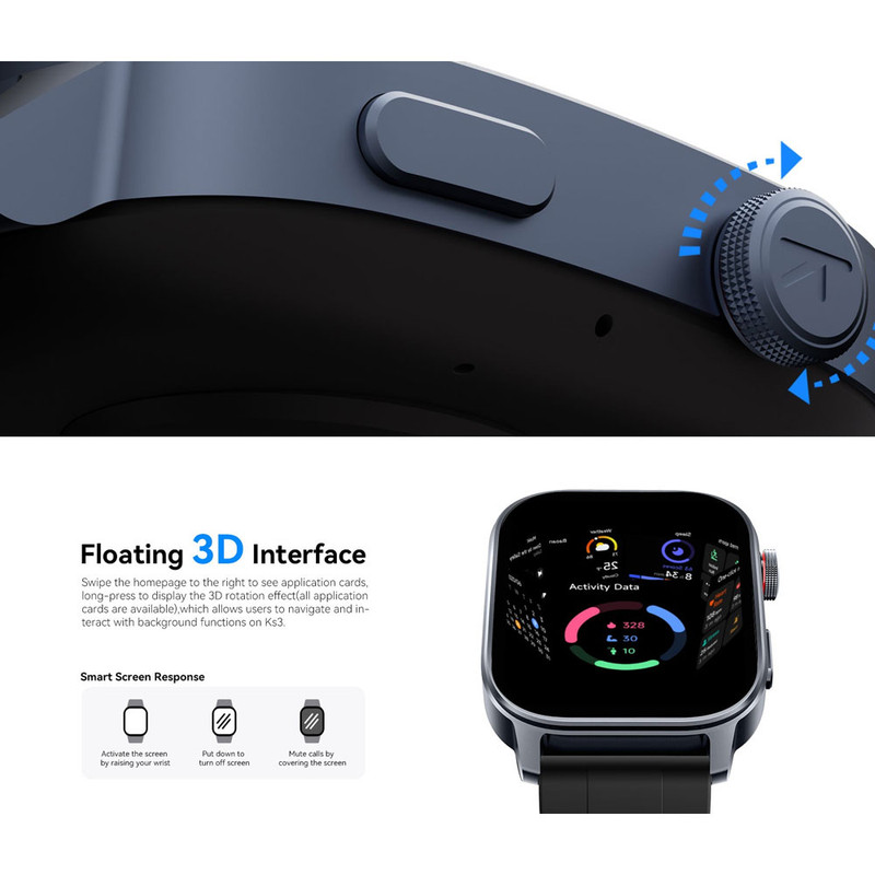 ساعت هوشمند کیسلکت مدل Ks 3 دارای قابلیت های صفحه نمایش رنگی، صفحه نمایش لمسی، کنترل سطح اکسیژن خون بند سیلیکون