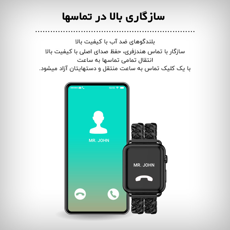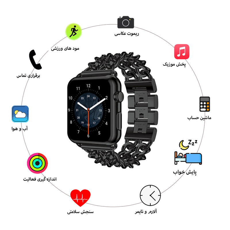 قابلیتهای ساعت هوشمند : صفحه نمایش لمسی , کنترل موسیقی (Music Player) , قابلیت مکالمه از طریق بلوتوث , پشتیبانی از زبان فارسی در منو و سیستمعامل
