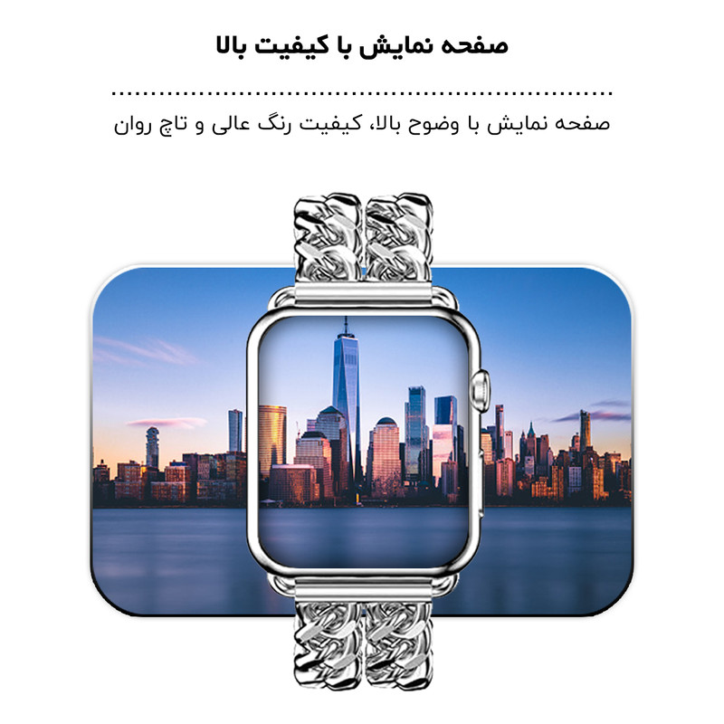 ساعت هوشمند گیفت کالکشن مدل WY Series با جعبه منحصر به فرد یکی از بهترین ساعت های هوشمند تولید شده در رده ساعت های با قابلیت مکالمه و با کارایی بالاست.این ساعت از بهترین متریال ساخت بدنه،صفحه نمایش IPS و بالاترین درجه کیفی ساخته شده است.قابلیت های ویژه این ساعت هوشمند پاسخ دهی و شماره گیری تماس از داخل ساعت ،نمایش اعلانات فارسی و انگلیسی-صفحه نمایش بدون حاشیه و تمام صفحه،قابلیت تعویض بند و قابلیت NFC که امروزه درچین و کشورهای پیشرفته برای مصارف گوناگون در حال گسترش است و ماشین حساب،کرنومتر،قابلیت آلارم،هشدار کم تحرکی،یادآوری نوشیدن آب-دارو، منوی فارسی،قابلیت های ورزشی مانند مسیر پیموده شده و کالری سوزانده شده و...از جمله ویژگی های مهم این ساعت است.این ساعت با قابلیت شارژر بیسیم عرضه شده که آخرین تکنولوژی مورد استفاده در دنیاست. به همراه ساعت یک عدد بند فلزی کارتیر دو حلقه - یک عدد بند سیلیکونی - محافظ صفحه نمایش - آداپتور مخصوص ساعت هوشمند - شارژر ساعت هوشمند و راهنمای نصب نرم افزار به صورت فارسی برای راحتی بیشتر مشتریان عزیز ارائه گردیده است.
