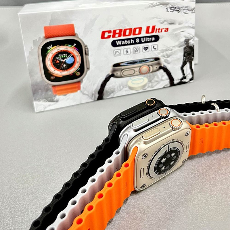 ساعت یکی از محبوبترین گجتهای هوشمند است که افراد بسیاری علاقه به استفاده از آن دارند. در حقیقت ساعتهای هوشمند تمامی فعالیتهای روزانه افراد را از هر جهتی راحتتر کرده و خوب شیک هم هستند و به عنوان استایل یک استایل جذاب کابرد دارند. یکی از این مدلها C800 ultra هست. این مدل از لحاظ ظاهری مثل آخرین مدل ساعت اولترا اپل میباشد. باید بدانید در این مدل هم مثل بقیه مدلهای کپی بیشتر سنسورها مثل ضربان قلب و فشار یا اکسیژن خون دکوری بوده و کار نمیکند یا خطای بسیار بالایی داره پس روی این اعداد حساب نکنید. این مدل در عین شباهت به اپل واچ سری 8 اولترا قیمت متوسطی دارد.البته این مدل 45 میلیمتر است.همچنین این مدل در کنار کیفیت مطلوب دارای قابلیتهای حائز اهمیتی است که به محبوبیت آن میافزاید. ابعاد این ساعت 11.35x38.3x45 میلیمتر است ظرفیت باتری آن حدود 200 میلیآمپرساعت است.این مدل امکان مکالمه را از طریق بلوتوث فراهم کرده است. این دستگاه از زبانهای فارسی و انگلیسی پشتیبانی میکند این ساعت مجهز به اسپیکر و میکروفون داخلی بوده و با اتصال به این ساعت علاوه بر مکالمه میتوانید به موسیقی مورد علاقه خود گوش کنید. همچنین نرم افزار اختصاصی این ساعت جذاب، Fitpro نام دارد. کلیه عکسهای این مدل واقعی است و میتوانید مطمئن باشید دقیقا همین کالا به دست شما خواهد رسید.
