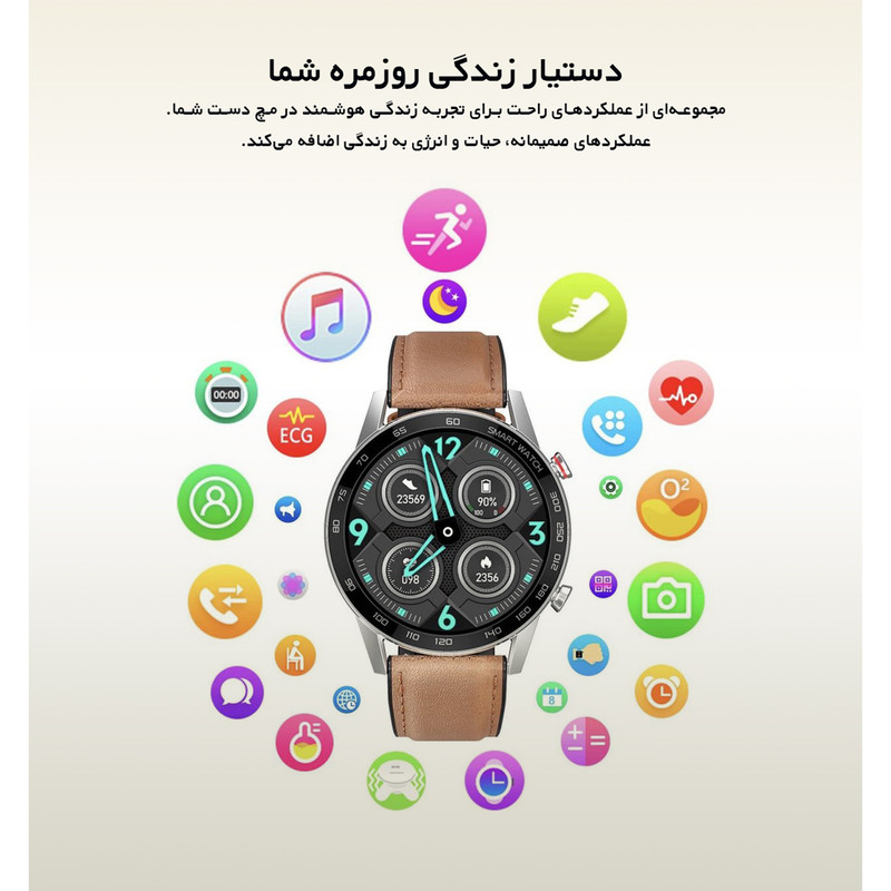 قابلیتهای ساعت هوشمند : صفحه نمایش لمسی , کنترل موسیقی (Music Player) , کنترل سطح اکسیژن خون , قابلیت مکالمه از طریق بلوتوث , پشتیبانی از زبان فارسی در منو و سیستمعامل