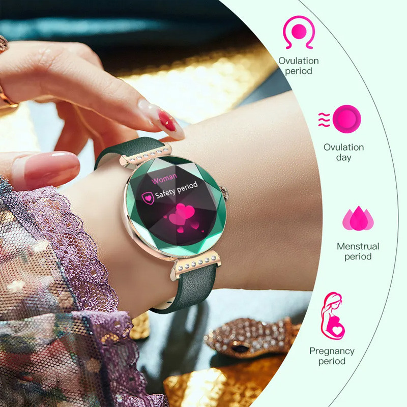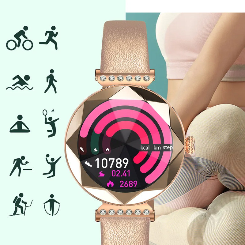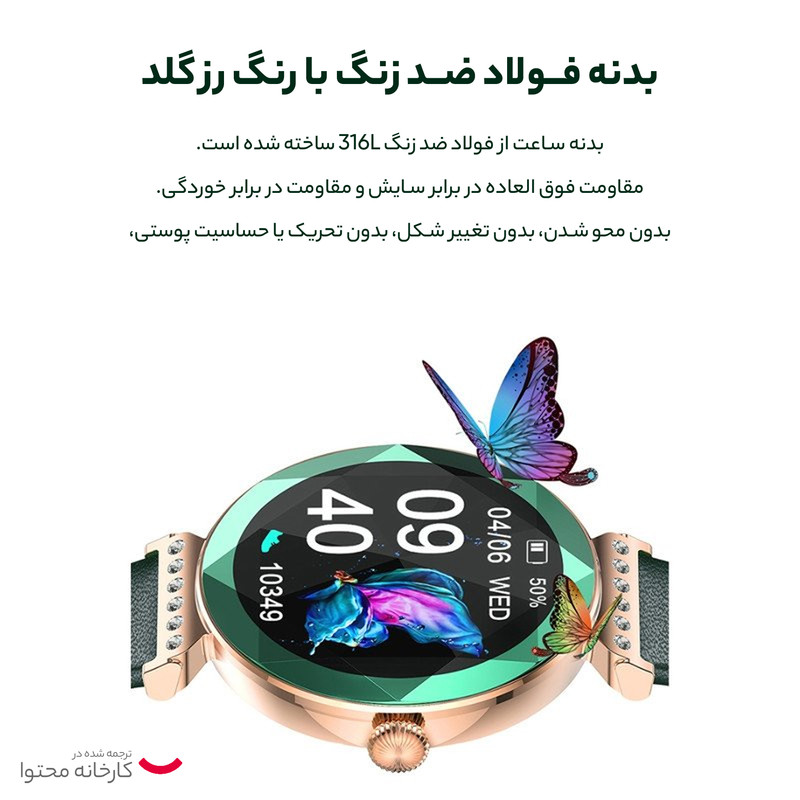 استایل خود را با ساعت هوشمند گرین لاین مدل Sowarovski بهتر کنید. ساعت شیک دارای آینه ای به شکل سنگ قیمتی است که در برابر خش مقاوم است و از صفحه نمایش ساعت هوشمند شما محافظت می کند. برای تامین امنیت، این ساعت دارای محافظ اثر انگشت نیز می باشد. به لطف قابلیت لمس چندگانه، میتوانید اقدامات مختلفی مانند اسکرول، زوم و نوار را به طور همزمان انجام دهید. علاوه بر این، این ساعت دارای صفحه نمایش گرد با وضوح 1.09 اینچی IPS 240 × 240 پیکسل است. بند ساعت 16 میلی متری برای استفاده روزمره مناسب است. علاوه بر این، این ساعت از یک باتری 190 میلی آمپر ساعتی تغذیه می کند، از فناوری بلوتوث 5.1 پشتیبانی می کند و دارای شارژر بی سیم است. به لطف شارژر بی سیم، شارژ دستگاه شما راحت، انعطاف پذیر و کارآمد شده است
