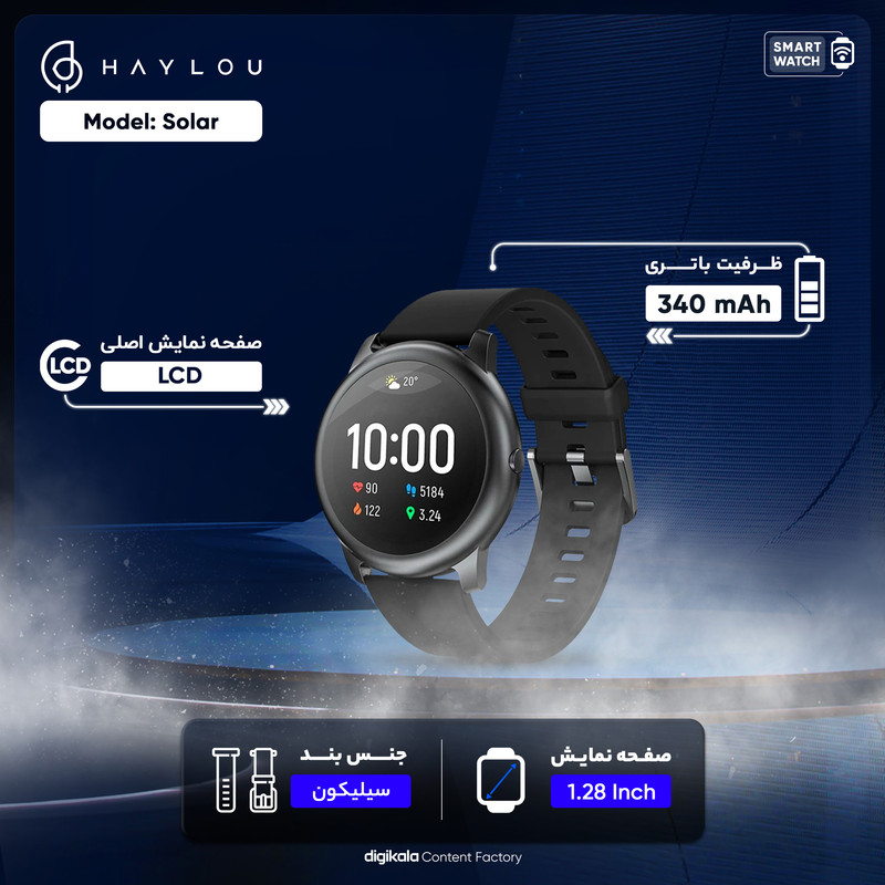 ساعت هوشمند 45.3 میلی متری هایلو مدل Solar LS05 با بند سیلیکونی