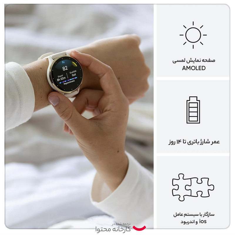 شمارنده ضربان قلب (Heart Rate) , فرمانهای حرکتی (Gesture) , سنجش اکسیژن خون (SPO2) , ژیروسکوپ (Gyro) , گام شمار