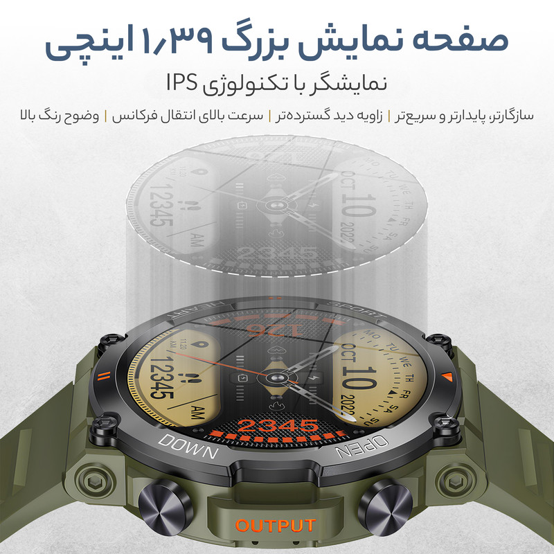 ساعت هوشمند مدل G͏9͏9͏U͏ltra-2025 ترکیبی از مُد و تکنولوژی، با مشخصاتی همچون طراحی بایومیمیکری، ظاهر و رنگ طبیعی الهام گرفته شده از طبیعت، نمایشگر بزرگ 1.39 اینچی IPS تمام لمسی HD با وضوح و روشنایی بالا، رزولوشن 360x360px و باتری بزرگ 450 میلیآمپری یک همراه حرفهای و شیک برای آقایان و بانوان خواهد بود. پشتیبانی از زبان فارسی در منوها، پیامها و اعلانها یکی از تغییرات و قابلیتهای اضافه شده این ساعت نسبت به ورژنهای قدیمی تر سری ساعتهای مدل G می باشد. رنگ بندی بسیار حرفه ای این ساعت ها که به خوبی از طبیعت الگوبرداری شده اند نیز بطور چشمگیری به زیبایی این ساعت افزوده است. طراحی بدنه در این ساعت از جنس فلز می باشد که در نهایت ظرافت و خلاقیت و مقاوم در برابر ضربه، سرما، حرارت، رطوبت و... پیاده سازی شده است. بند ساعت از جنس سیلیکون نرم، ضد حساسیت، با کیفیت و انعطاف پذیر است. همچنین دارای سوراخ های تعبیه شده جهت جلوگیری از تعریق در هنگام فعالیت های ورزشی می باشد. نصب و جداسازی بندهای این ساعت بسیار آسان است. G͏9͏9͏U͏ltra-2025 دارای یک باتری قدرتمند با ظرفیت بالا(450mAh) و زمان آماده به کار فوقالعاده 30 روزه می باشد. همچنین این ساعت قابلیت مکالمه و تماس بلوتوثی با کیفیت و وضوح بالا را دارد. بدلیل استفاده از پردازنده قدرتمند و چیپست کممصرف در این ساعت، تجربه کارکرد بسیار روان با سرعت بالا را در اختیار کاربر قرار میدهد. این ساعت با حسگرهای دقیق و استفاده از الگوریتمهای جدید و پیشرفته اطلاعاتی نظیر ضربان قلب، فشار خون، اکسیژن خون، قدمها، مسافت پیموده شده، کالری و... را در اختیار شما قرار میدهد. اسمارت واچ G͏9͏9͏U͏ltra-2025 از بیش از 50 حالت ورزشی حرفهای متنوع پشتیبانی میکند. این ساعت دارای قابلیتهای جذاب و کاربردی همچون عکاسی از راه دور(Remote Camera)، اطلاعات آب و هوا، یادآوری بی تحرکی(Sedentary Reminder)، کنترل ضربان قلب در تمام مدت طول روز، مانیتور و نظارت بر کیفیت خواب، یادآوری اعلانها، پخش موسیقی، بیش از صد واچ فیس متنوع و... میباشد.