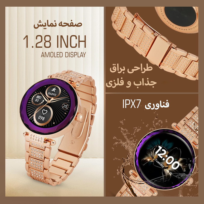 ساعت هوشمند مدل GEN 17 با قابلیت صفحه نمایش رنگی و لمسی، کنترل موسیقی، مکالمه از طریق بلوتوث و امکان تغییر تم ساعت و ضد آب با بند فلزی