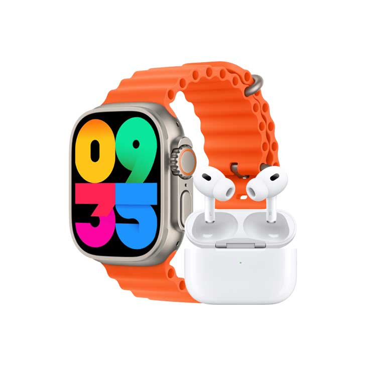 با افزودن هدفون بلوتوثی AirPods Pro به این بسته، تجربه صوتی کاربران به سمت کیفیت بالاتری حرکت میکند. این هدفون، با قابلیت انطباق با دستگاههای IOS و اندروید، صدای واضح و پاکی را ارائه میدهد. شارژ بیسیم ساعت و شارژ لایتنینگ AirPods Pro، اطمینان از شارژ سریع و راحت تمام دستگاهها را فراهم میکند.