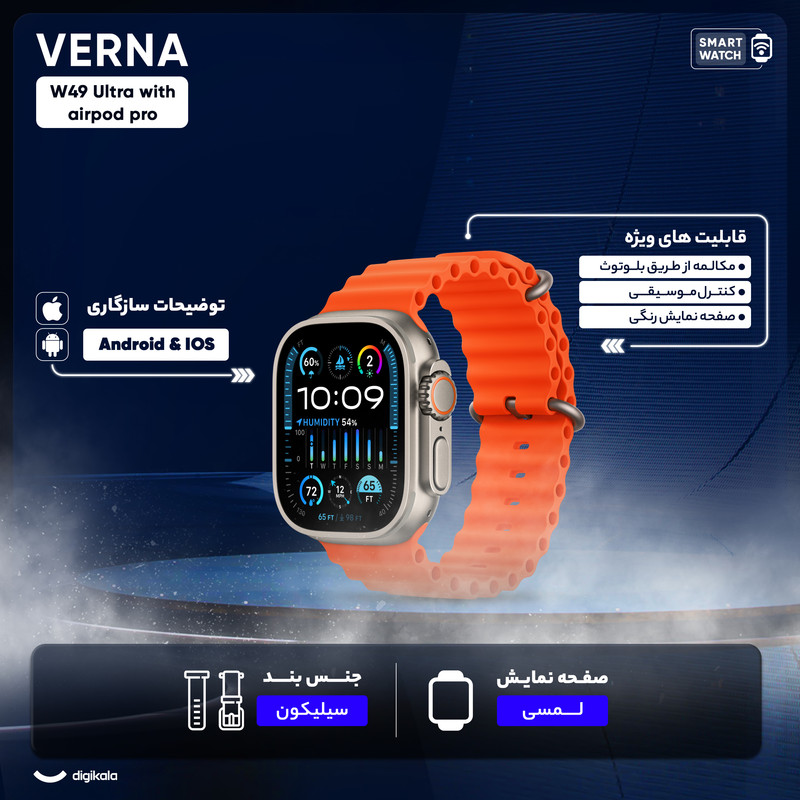 ساعت هوشمند ورنا مدل W49 Ultra، ترکیبی از طراحی مدرن، عملکرد قوی، و قابلیتهای متعدد است که به دنبال آسانسازی زندگی روزمره کاربران است. این ساعت، با فرم مستطیلی و بدنه آلومینیومی، مقاومت بالایی در مقابل شرایط مختلف ارائه میدهد. بند سیلیکون قابل تعویض آن، به کاربران اجازه میدهد تا ظاهر ساعت را برای مناسبتر شدن با مناسبتهای مختلف تغییر دهند.