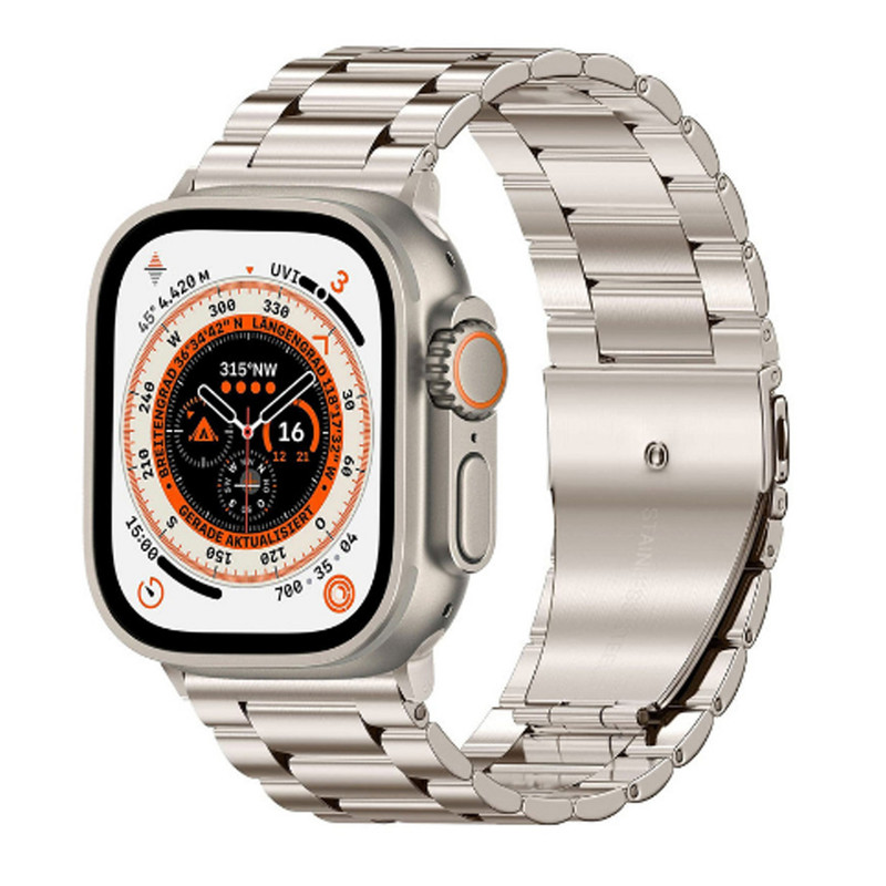 رنگ بدنه گلد مات دارای چهار بند با 1- جنس سیلیکون نارنجی2- جنس پارچه ای مشکی3- جنس چرمی قهوه ای4- جنس استیل فلزی