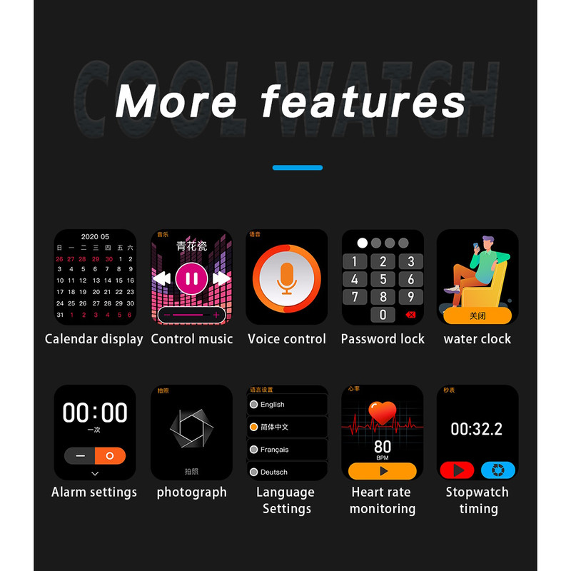 قابلیتهای ساعت هوشمند : صفحه نمایش رنگی , صفحه نمایش لمسی , کنترل موسیقی (Music Player)
