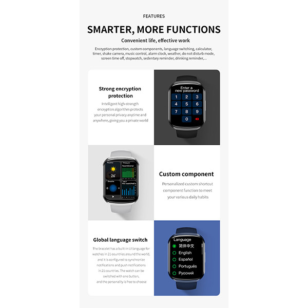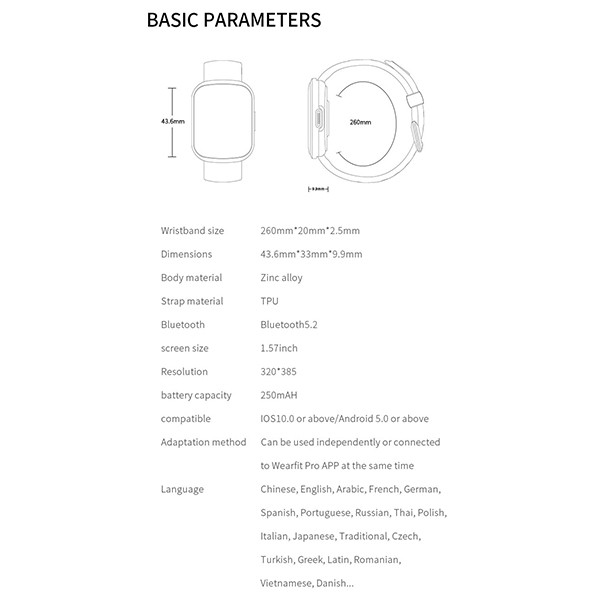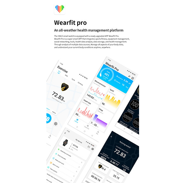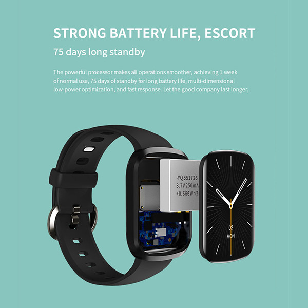 واچ فیس این ساعت نیز قابل تغییر بوده و دارای ده ها عدد واچ فیس متحرک ، سه بعدی و دو بعدی با قابلیت انخاب تصویر پس زمینه دلخواه از طریق نرم افزار Wearfit pro می باشد. باتری فوق العاده قدرتمند این ساعت نیز امکان استفاده عادی به مدت 10 روز را فرآهم می کند. از دیگر قابلیت های این ساعت می توان به ضد آب بودن مطابق گواهی IP68 نیز اشاره کرد.