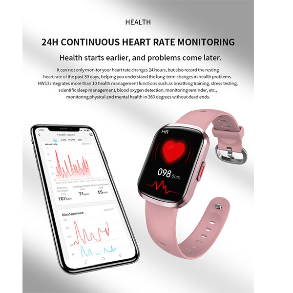 ساعت هوشمند دات کاما مدل HW13 در واقع مدل گران تر و با کیفیت تر مدل HW12 می باشد. در این مدل تمامی سنسور های سلامتی بر خلاف بسیاری از ساعت های ارزان قیمت چینی واقعی و دقیق می باشند در به صورت 24 ساعته وضعیت سلامت شما را پایش می کنند. ساعت HW13 دارای صفحه نمایش بسیار با کیفیت IPS با حاشیه بسیار کم بوده و همچنین مجهز به سنسور های سنجش ضربان قلب، اکسیژن خون، گام شمار و چرخش دست می باشد که به همراه بند 20 میلیمتری با کیفیت از نوع سگکی و قابل تعویض ارائه می گردد.