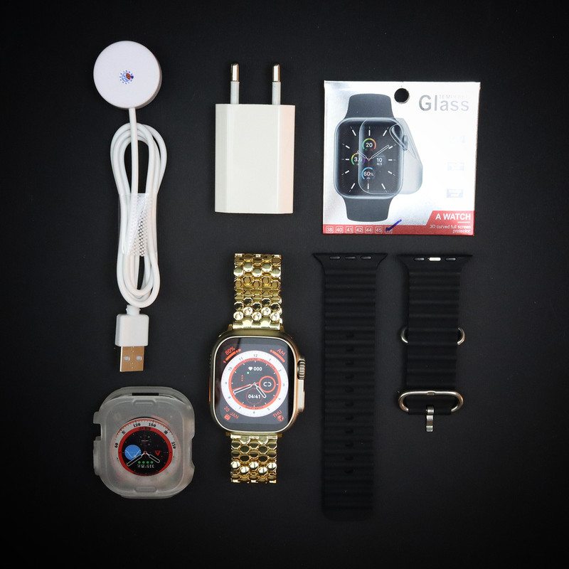 اقلام همراه : یک عدد بند فلزی - یک عدد بند سیلیکونی اوشن - آداپتور مخصوص ساعت هوشمند - بامپر و راهنمای فارسی نصب نرم افزار