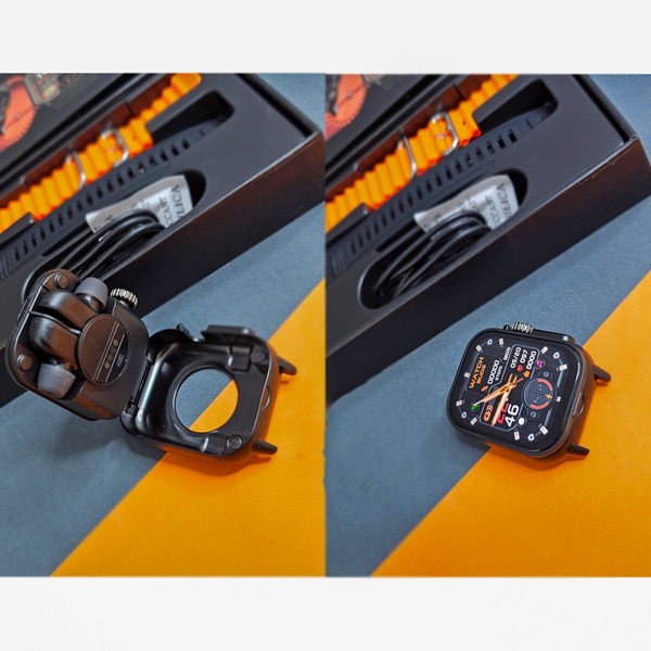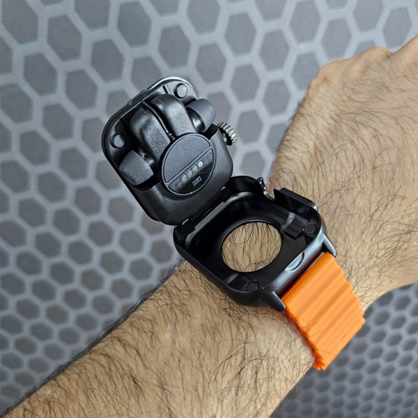 ساعت هوشمند GT8BUDS یک محصول مدرن و متفاوت است که طراحی خاص آن، ترکیبی از ساعت هوشمند حرفهای و ایرپاد بیسیم را در یک دستگاه فراهم کرده است. سایز ۴۹ میلیمتری این ساعت، ظاهر جذاب و اسپرتی به آن میدهد و بهخوبی روی دست قرار میگیرد. اما نکتهای که GT8BUDS را از سایر ساعتهای بازار متمایز میکند، وجود دو عدد ایرپاد کوچک در زیر صفحه ساعت است. به این ترتیب همیشه هدفونهای بیسیم خود را همراه دارید و دیگر نیازی نیست آنها را بهصورت جداگانه حمل کنید. ایرپادهای این ساعت همانند خود ساعت با همه مدل گوشی سازگار هستند و چه کاربر اندروید باشید چه آیفون، بهراحتی میتوانید از آنها استفاده کنید.