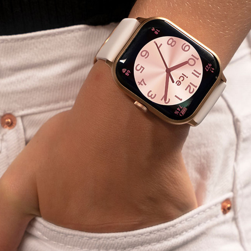 ساعت هوشمند آیس واچ مدل 022538 دارای قابلیت های صفحه نمایش رنگی، صفحه نمایش لمسی، کنترل سطح اکسیژن خون، قابلیت مکالمه از طریق بلوتوث، قابلیت تغییر طرح ساعت یا تم سیلیکون