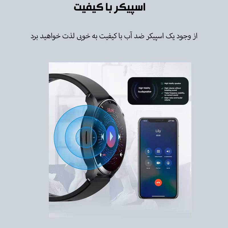 صفحه نمایش رنگی , صفحه نمایش لمسی , کنترل موسیقی (Music Player) , قابلیت مکالمه از طریق بلوتوث , قابلیت تغییر طرح ساعت یا تم , کنترل سطح اکسیژن خون