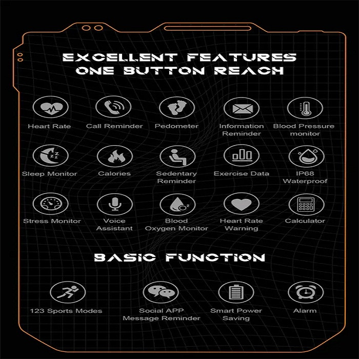 قابلیتهای ساعت هوشمند : صفحه نمایش رنگی , صفحه نمایش لمسی , کنترل موسیقی (Music Player) , کنترل سطح اکسیژن خون , قابلیت مکالمه از طریق بلوتوث