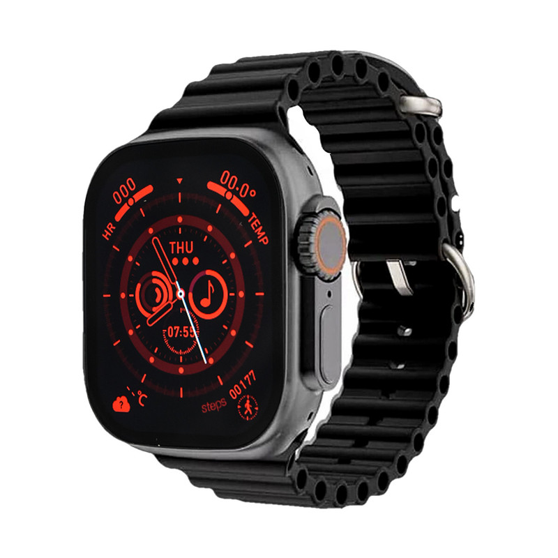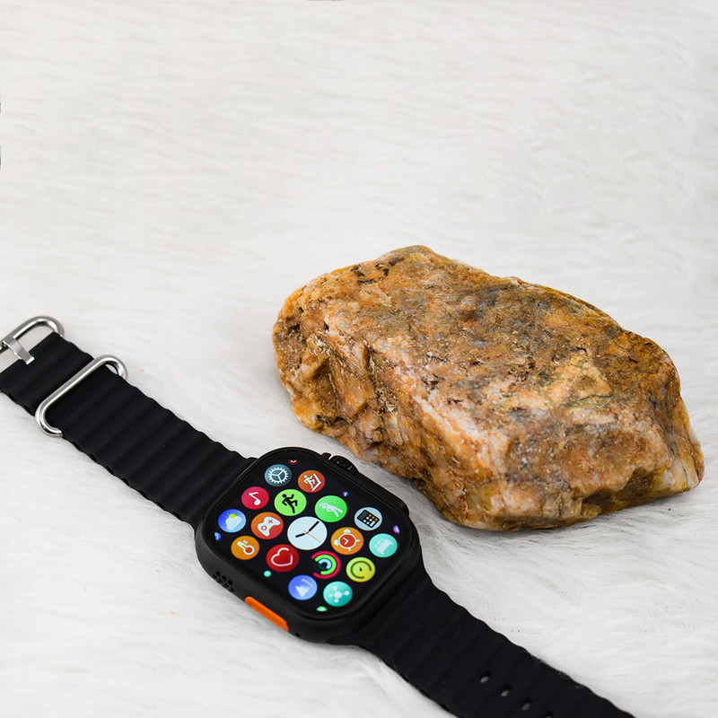 ساعت هوشمند ضدآب مدل watch8 X8 ultra اورجینال از برند mrs برند اصلی اسمارت واچ سایز 49 میلیمتر است ، این ساعت دقیقاً بر اساس اپل واچ اولترا ساخته شده و نسبت به قیمت خود از امکانات خیلی فراوانی برخوردار هست یکی از نقاط قوت این ساعت هوشمند صفحه نمایش بزرگ ، با کیفیت و وضوحی بی نظیر ، روشنایی خیلی زیاد نمایشگر که باعث جذابیت آن شده و در زیر نور خورشید هم میتوان به راحتی با آن کار کرد ، همچنین این ساعت دارای میکروفون و اسپیکر و قابلیت تماس و پاسخ به تماس ها با نمایش اسم مخاطبین به فارسی میباشد ، بدنه استیل ضد زنگ با کیفیت بالا ، به همراه بند سیلیکونی مدل اوشن ( بند خاص اپل واچ اولترا ) باعث شده که ساعت هوشمند X8 ultra نزدیک ترین کیفیت ساخت را به اپل واچ اولترا داشته باشد . از امکانات این ساعت میتوان به منوی بسیار روان و سریع به همراه سخت افزار قوی ، مقاومت در برابر آب و دارای گواهی iP 67 ، سنسورهای سلامت ضربان قلب ، فشار خون ، اکسیژن ، سنسور جدید دمای بدن ، فشار سنج و ارتفاع سنج ، قدم شمار ، کالری سنج ، مسافت سنج ، چندین حالت مختلف ورزشی، سه دکمه فعال مجیک باتون ،دو بازی ،نمایشگرخواب مفید دارد به همراه بند دوم رندوم و آداپتور اصلی (توجه داشته باشین مدل اصلی این ساعت با جعبه و دفترچه mrs ارایه میشود در غیر این صورت ساعت فیک هست)