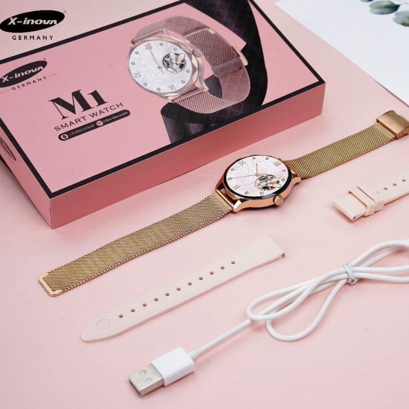 اقلام همراه : ساعت هوشمند X inova مدل M1 دو عدد بند فلزی و سیلیکونی شارژر وایرلس دفترچه راهنما