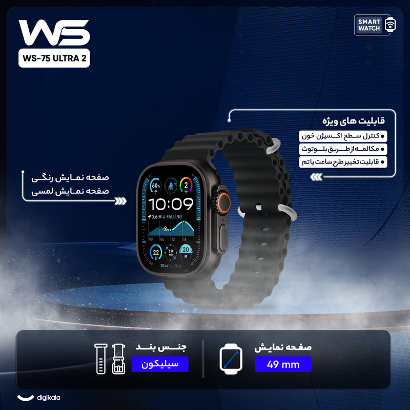 ساعت هوشمند WS-75 ULTRA 2 یک انتخاب عالی برای افرادی است که به دنبال ترکیبی از طراحی زیبا و قابلیتهای پیشرفته هستند. این ساعت دارای صفحه نمایش AMOLED با وضوح بالا و مصرف انرژی کم است که تجربهای بینظیر از نمایش اطلاعات ارائه میدهد. همچنین با طراحی زیبا ، مناسب برای استفاده روزمره و ورزش است. این ساعت با صفحه نمایش تمام صفحه و وضوح بالای AMOLED، تجربهای جذاب را برای کاربران فراهم میکند. قابلیت تماس و لمس دوگانه این امکان را به شما میدهد که بهراحتی تماسهای خود را مدیریت کنید و با یک لمس ساده به عملکردهای ساعت دسترسی پیدا کنید. همچنین با ویژگی مانیتورینگ خواب، میتوانید کیفیت خواب خود را پایش کرده و الگوهای خوابتان را بهبود دهید.ساعت هوشمند WS-75 ULTRA 2 مجهز به سنسورهای پیشرفتهای است که میتوانند ضربان قلب و فعالیتهای ورزشی مختلف را اندازهگیری کنند. اما لطفاً توجه داشته باشید که این ساعت به هیچوجه، یک وسیله پزشکی نیست و تمامی دادههای مربوط به پایش سلامت، صرفاً به منظور اطلاع کلی شماست. این ساعت همچنین دارای قابلیت یادآوری کمتحرکی و هشدار بیداری است که به شما کمک میکند تا در طول روز فعالیتهای لازم را انجام دهید.با قابلیتهای پیشرفتهای همچون پخش موسیقی، هشدار پیامها، این ساعت تمامی نیازهای شما را برآورده میکند. باتری قابل شارژ این دستگاه دوام طولانی داشته و میتوانید بهراحتی در طول روز از آن استفاده کنید.