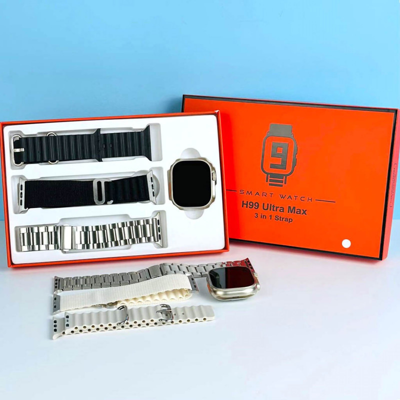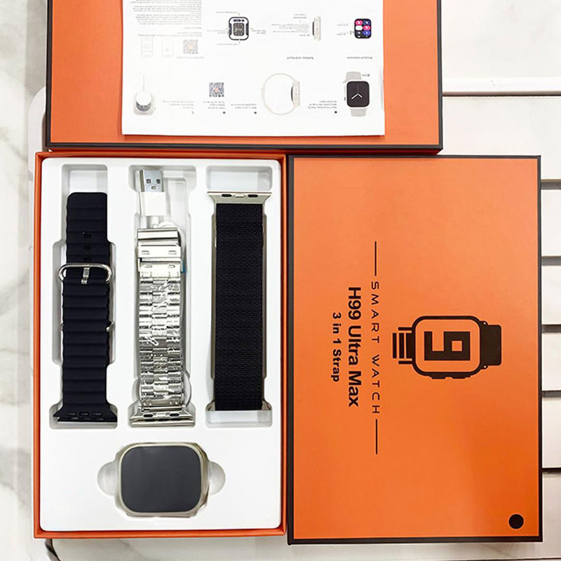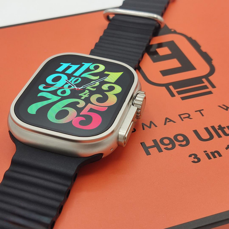 ساعت هوشمند مدل H99 ULTRA MAX 49mm صفحه نمایش رنگی , صفحه نمایش لمسی , کنترل سطح اکسیژن خون , قابلیت مکالمه از طریق بلوتوث با بند استیل