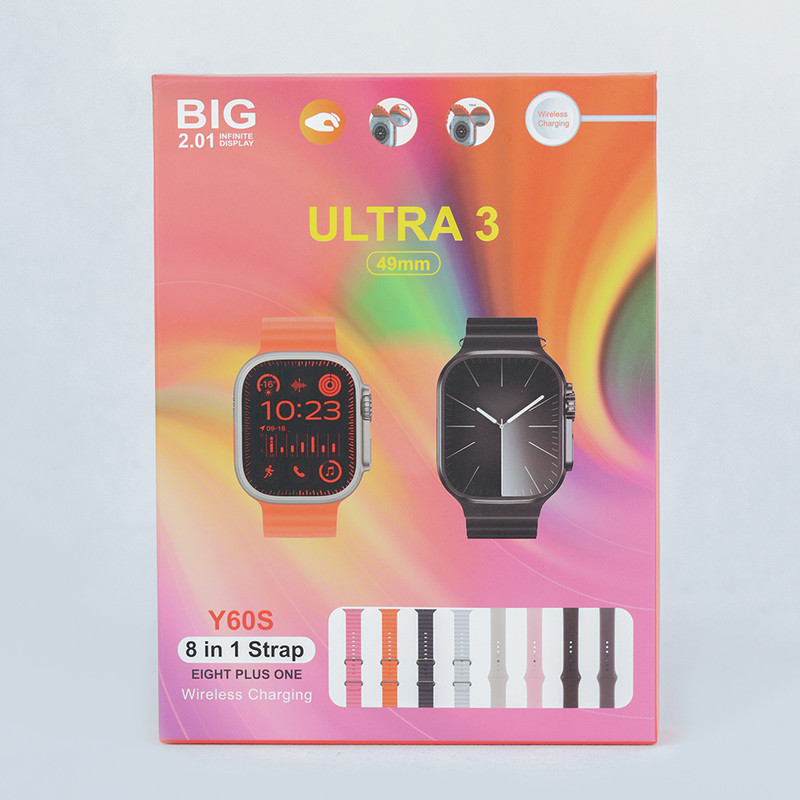 ساعت هوشمند مدل Y60S - ULTRA3 یک ساعت هوشمند و مدرن است که به شما امکان میدهد با تمام ویژگیهای جذابش به راحتی در محل کار، ورزش و حتی مواقع رسمی، خوش تیپ و شیک باشید.این ساعت هوشمند دارای قابلیتهای فراوانی است. با قابلیت مکالمه (از طریق اتصال به بلوتوث) و پخش موسیقی، شما میتوانید از تماس با دوستان و موسیقیهای مورد علاقهتان لذت ببرید. اما قابلیت برجستهتر این ساعت هوشمند، سنسورهای سلامتی فراوانی است که دارد. با پایش ضربان قلب، فشار خون، اکسیژن خون و…، این ساعت به شما کمک میکند تا سلامتی خود را بررسی کرده اما لطفاً توجه داشته باشید که این ساعت به هیچوجه، یک وسیله پزشکی نیست و تمامی دادههای مربوط به پایش سلامت، صرفاً به منظور اطلاع کلی شماست ساعت هوشمند Y60S - ULTRA3 دارای 8 عدد بند سلیکونی قابل تعویض داخل جعبه میباشد. شارژر داخل جعبۀ ساعت از نوع وایرلس و مگنتی است. چنانچه گفته شد، بند این مدل، قابل تعویض با تمام بندهای اپل واچ میباشد.از امکانات دیگر این ساعت میتوان به منوی بسیار روان و سریع به همراه سخت افزار قوی و پشتیبانی از زبان فارسی اشاره کرد.
