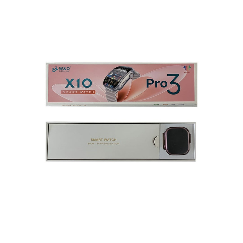 ساعت هوشمند مدل X10 PRO3 ساعت هوشمند با صفحه محدب است که به تازگی توسط کمپانی W&O وارد بازار شده است. این مدل از سری ultra 8 در سایز 49 میلی متر مباشد. بزرگترین وجه تمایز این مدل را در صفحه نمایش محدب بسیار با کیفیت با نرخ به روز رسانی 90hz و با کیفیت تصویر بسیار بالا با اندازه 2.09 میتوان یافت که این مدل را به اولین مدل با صفحه محدب تبدیل کرده است. پشتیبانی کامل از زبان فارسی (حتی در منو) فعال بودن هر 3 دکمه (2 دکمه در سمت راست و یک دکمه در سمت چپ) ،صفحه نمایش بسیار با کیفیت و روان آن در کنار داشتن دکمه جادویی یا مجیک باتون یا دکمه چرخشی برای تغییر صفحات و بزرگنمایی و کوچکنمایی همچنین داشتن شارژر وایرلس دقیقا مشابه اپل از بهترین ویژگی های اولیه آن است.