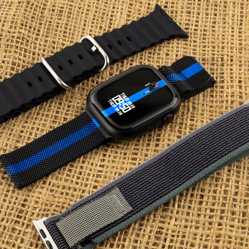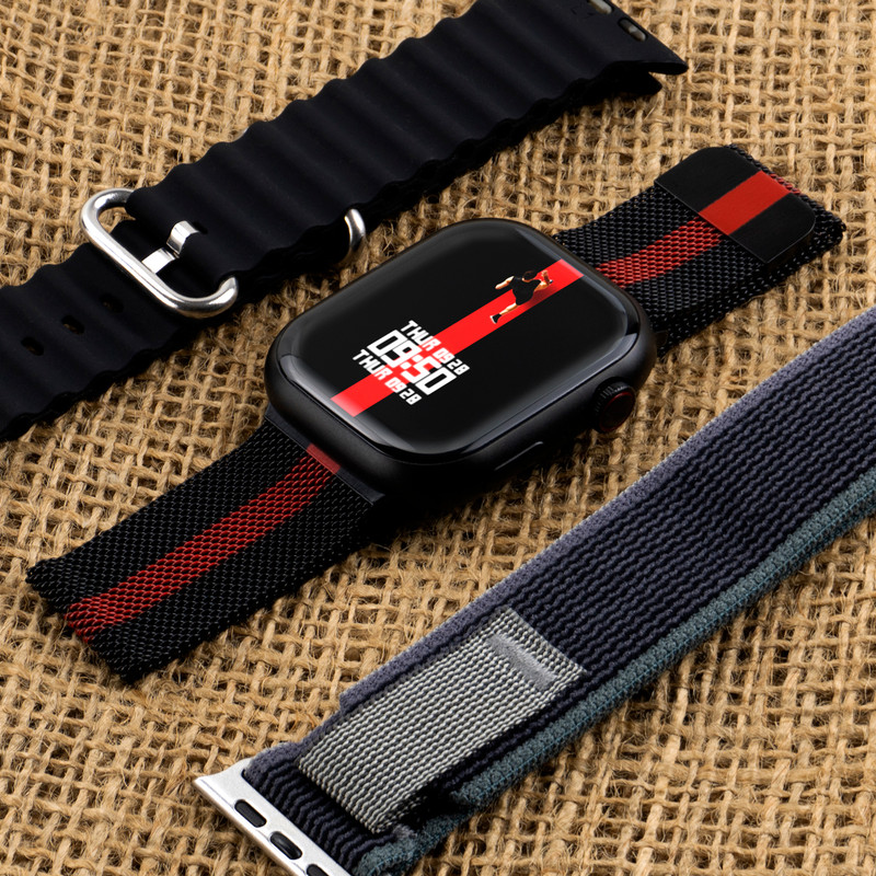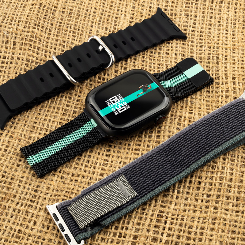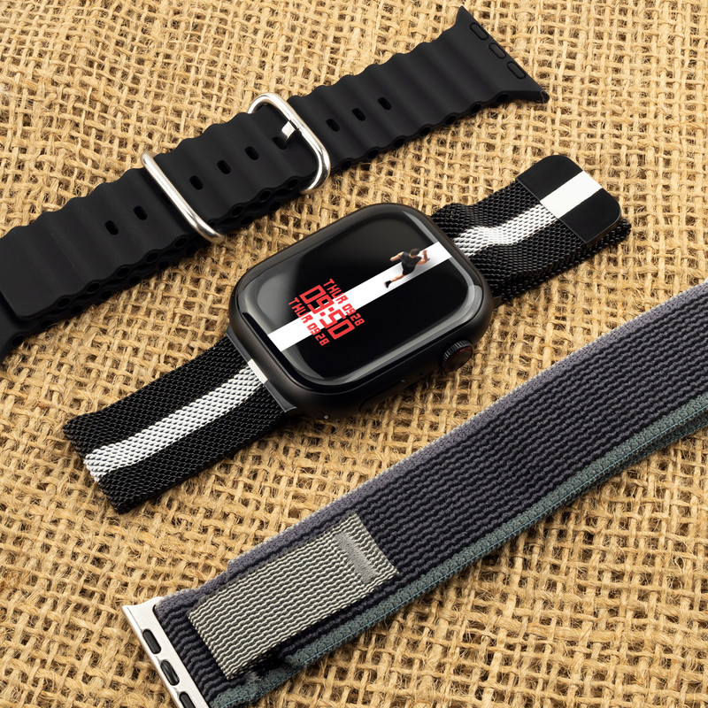دارای یک عدد بند فلزی حصیری لاین یک عدد بند اوشن مشکی و یک عدد بند تریل مشکی خاکستری