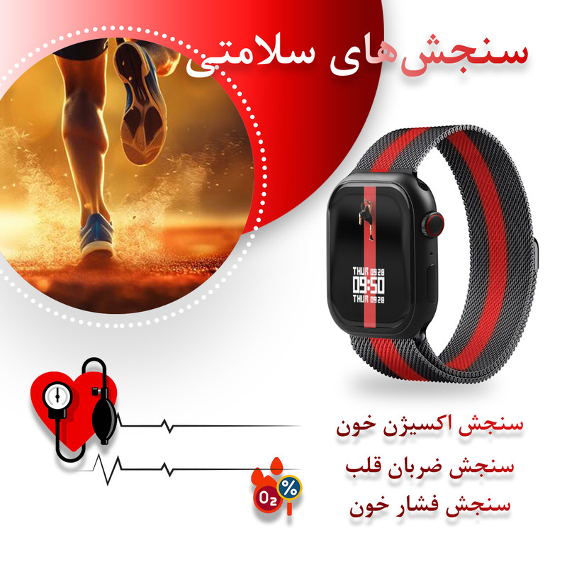 شمارنده ضربان قلب (Heart Rate) , سنجش اکسیژن خون (SPO2) , گام شمار