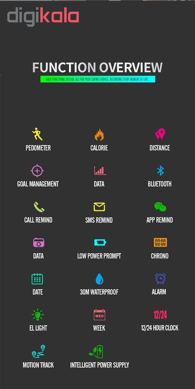 ساعت هوشمند مدل « 1500» پساز اتصال از طریق بلوتوث به سیستمعامل Android 4.3 به بالا و ios 7 به بالا شروع به رصد کردن فعالیتهای شما در طول شبانهروز میکند. بهدلیل ضدآب بودن تا عمق30متر،این ساعت هوشمند گزینهای مناسب برای ورزشهای آبی است و دارای باتری داخلی است که تا مدتها نیازی به تعویض ندارد و بهدلیل طراحی ورزشی دارای نور پسضمینه است که با فشردن دکمهای که در کنار ساعت تعبیه شده فعال میشود. پساز ست شدن گوشی با ساعت، میزان کالری مصرفی بهصورت دورهای و روزانه و لحظه به لحظه از طریق برنامه نصب شده قابل مشاهده است. اعلان شبکههای اجتماعی و تماس ورودی از دیگر قابلیتهای این ساعت است.