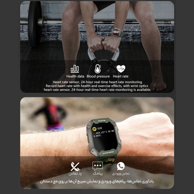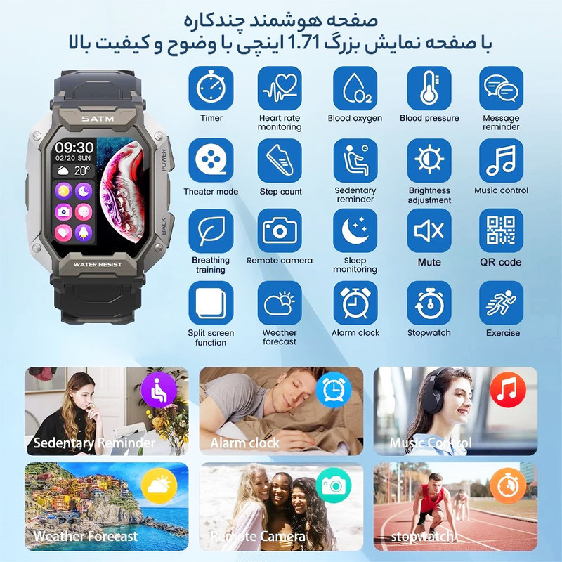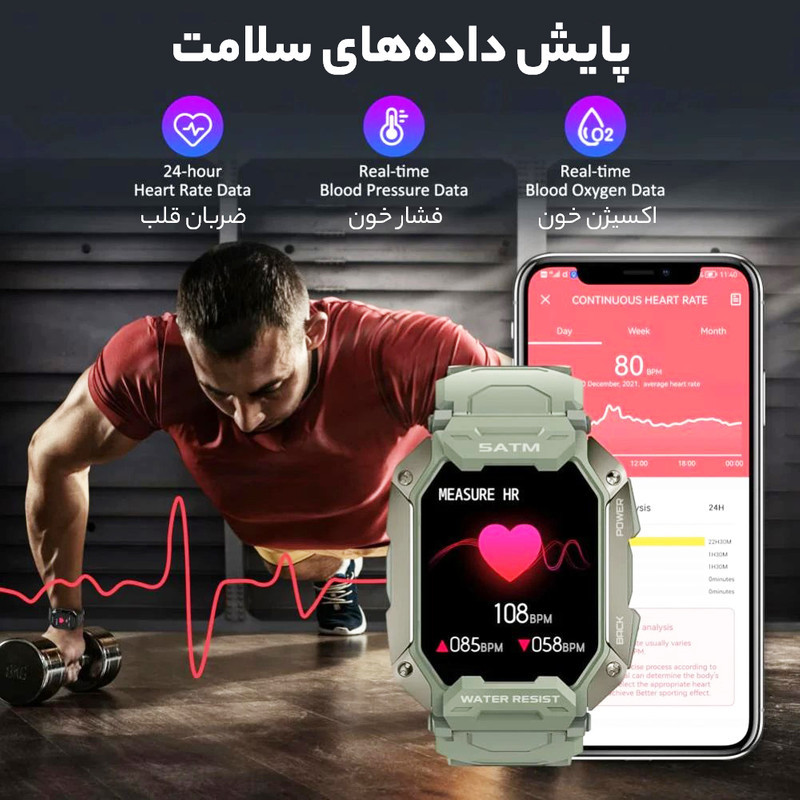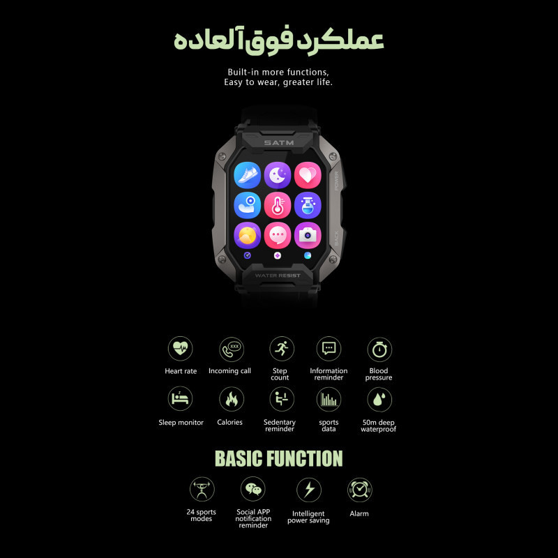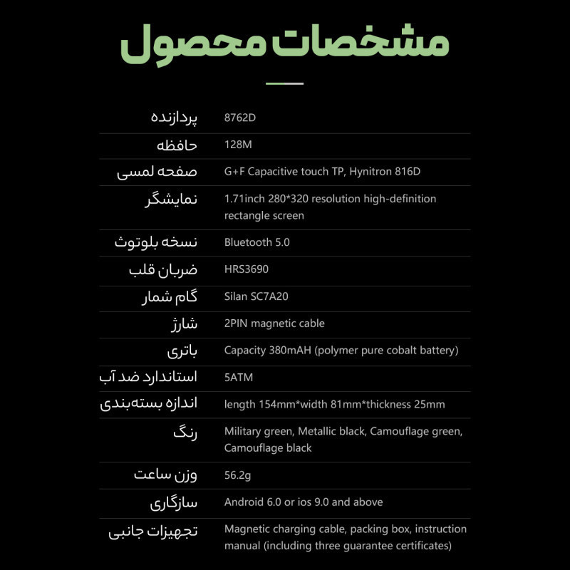 قابلیت‌های ساعت هوشمند : صفحه نمایش رنگی , صفحه نمایش لمسی , کنترل موسیقی (Music Player) , کنترل سطح اکسیژن خون